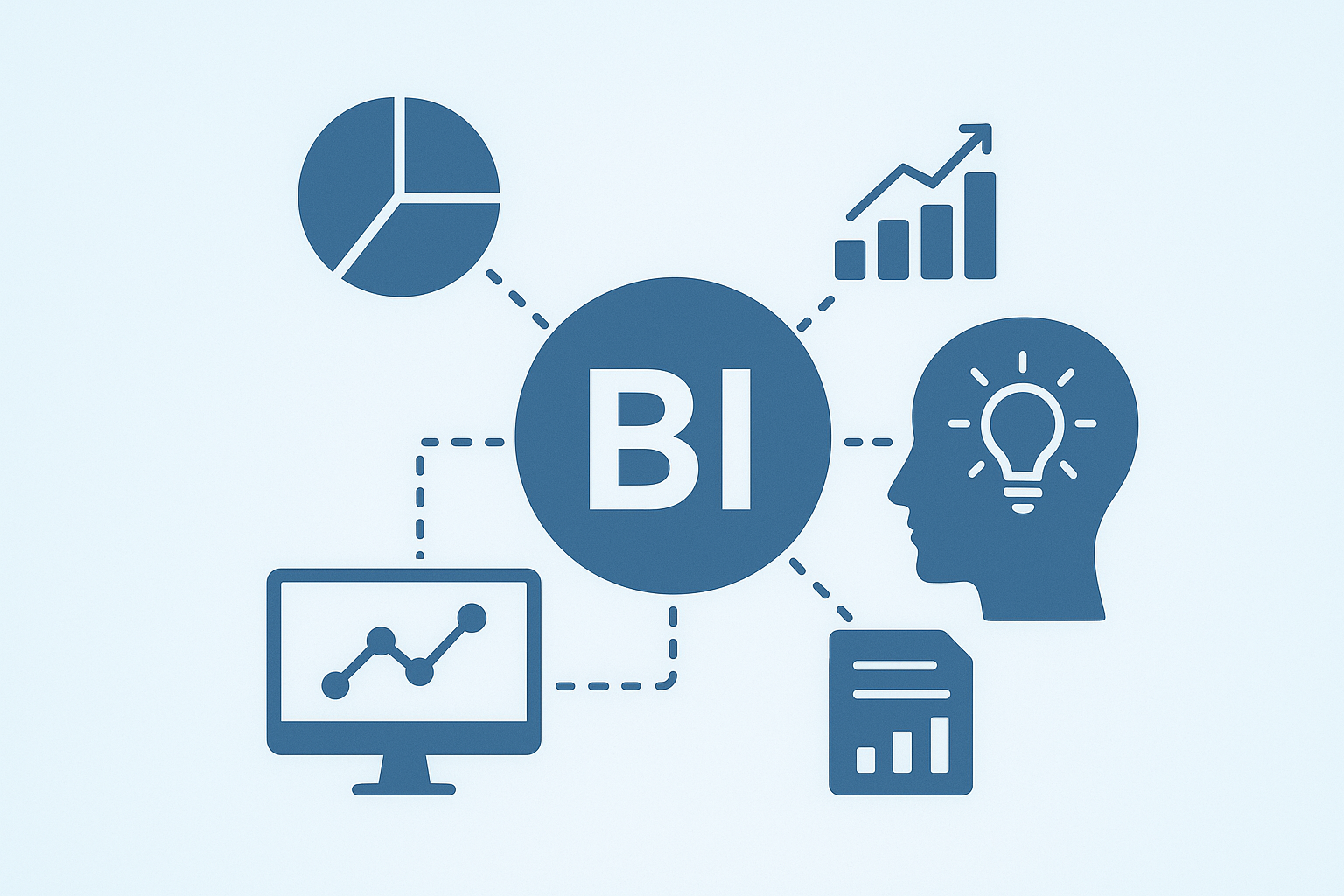 Definíció: Az üzleti intelligencia (Business Intelligence, röviden BI) gyűjtőfogalom; magában foglalja azokat az alkalmazásokat, legjobb gyakorlatokat, eszközöket - beleértve az infrastruktúrát is -, amelyek lehetővé teszik, hogy megszerezhessünk és felhasználhassunk olyan információkat, amelyek fontosak ahhoz, hogy az üzleti döntéseket és így az üzleti teljesítményt javítsuk.Alkalmazásával optimalizálhatjuk a belső üzleti folyamatokat, növelhetjük a működés hatékonyságát, új bevételi forrásokhoz juthatunk, és előnyre tehetünk szert a piaci versenyben. Trendeket ismerhetünk fel, és azonosíthatunk olyan üzleti problémákat, amelyekkel foglalkoznunk kell. Hatalmas, gyakran rosszul strukturált adattömeget kezelhetünk, ezzel új üzleti lehetőségeket tárhatunk fel, majd megtehetjük a szükséges lépéseket. Az üzleti intelligencia mind a múltbeli, mind a jelenlegi működés elemzésére alkalmas, a modern technológiák egyre pontosabb előrejelzéseket tesznek lehetővé. Üzleti döntések széles skáláját támogatja a stratégia kialakításától a napi működés támogatásáig. Utóbbira példa egyebek mellett a termékek pozicionálása és árazása, előbbire pedig új üzleti területek azonosítása. Az üzleti intelligencia lehetőségeit akkor használhatjuk ki a legjobban, ha a döntéshez szükséges adatokat minden lehetséges forrásból, a vállalaton belülről és kívülről is beszerezzük és feldolgozzuk. Ezeknek a "sokszínű" adatoknak az integrálása és feldolgozása adja az "intelligenciát"